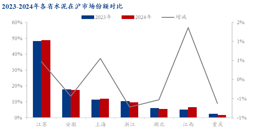 2024年上海混凝土用量5700万方,同比上升2.1%),同比下跌7%,同比下降1.3%),2024年长三角区域水泥出产企业全年平均窑线个百分点,厂家多次从导价钱恢复性上涨,